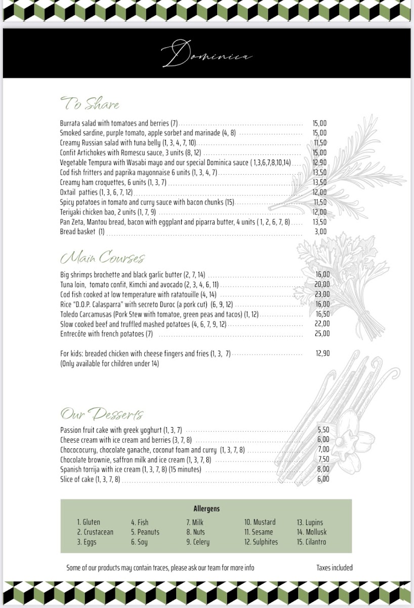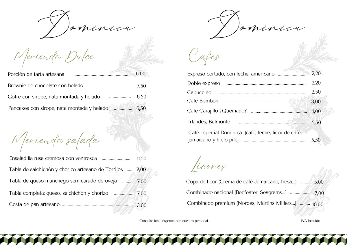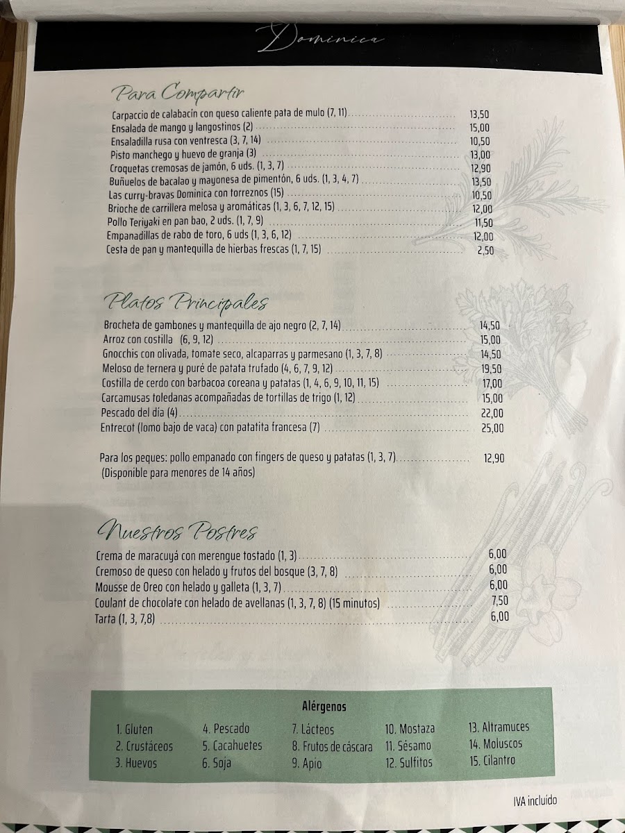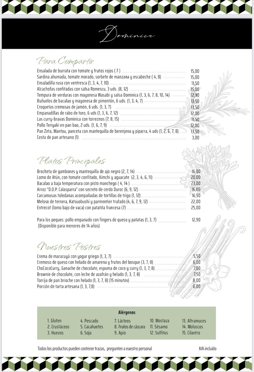 Restaurante Dominica Menu