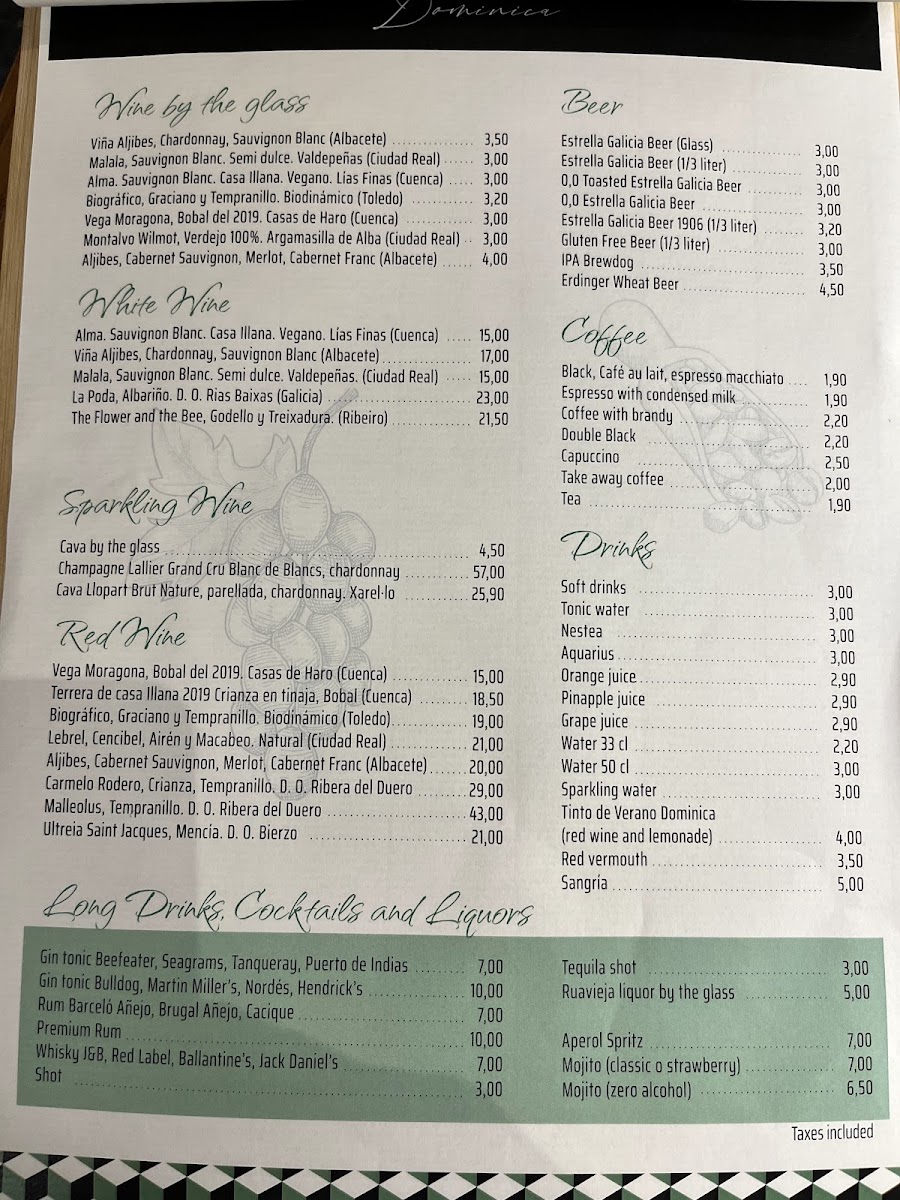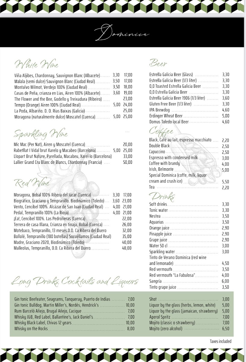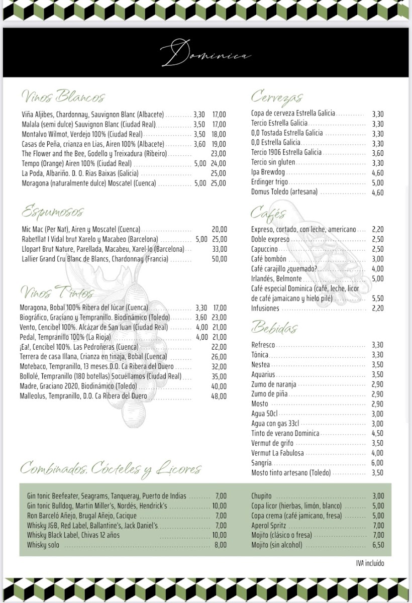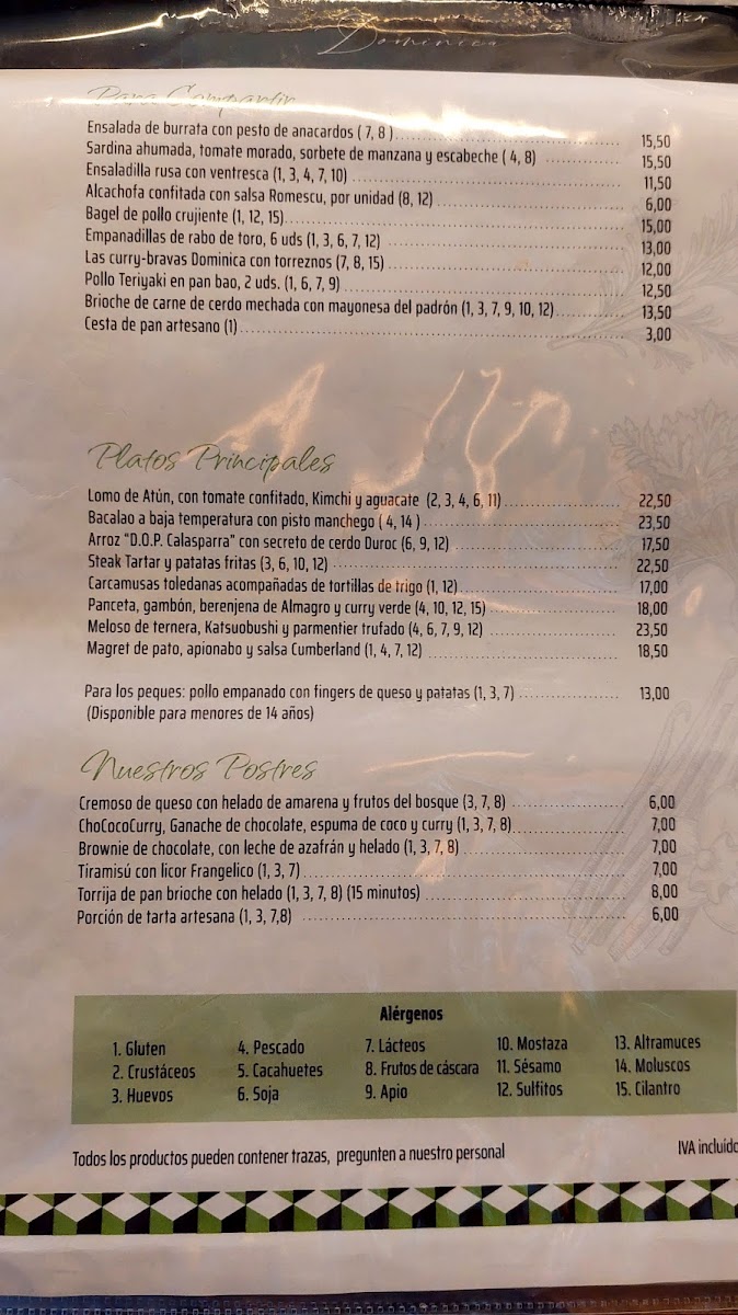 Restaurante Dominica Menu